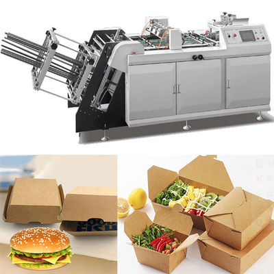 La boîte automatique à pizza emportent des machines de fabrication de cartons de déjeuner de papier de nourriture est un équipement idéal pour produire la boîte de papier une telle boîte similaire à hamburger, à boîtes à confetti, boîte à poulet frit, boîte de repas d'enfants, etc.